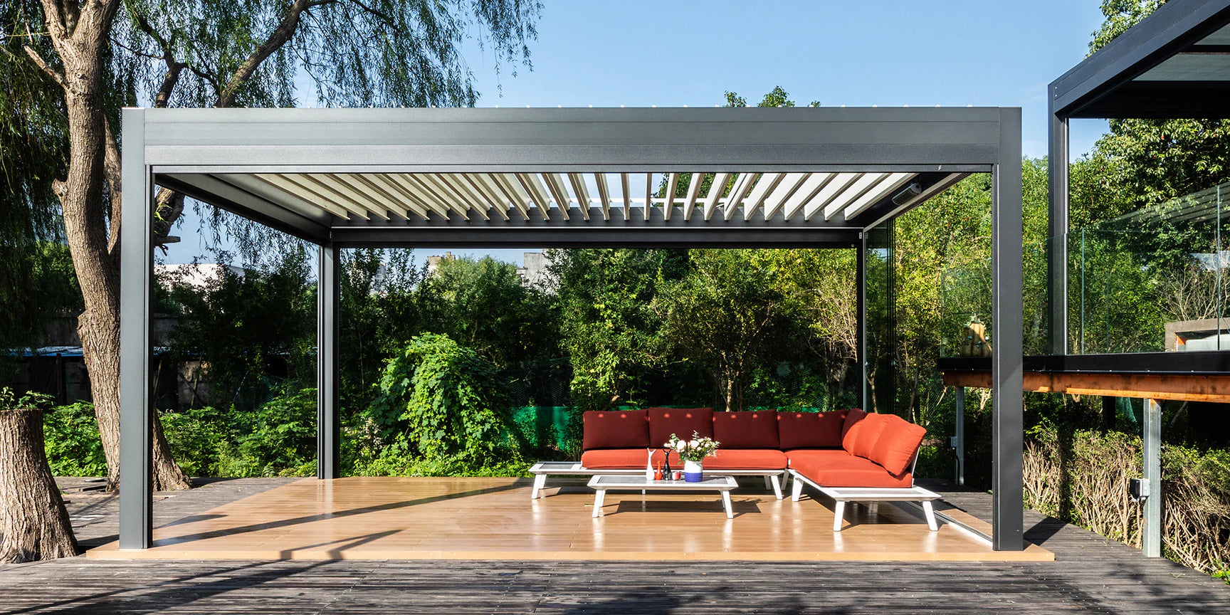 Durable, low-maintenance, and weather-resistant. With adjustable louvers, integrated drainage, and optional LED lights, heaters, and motorized screens, it’s the perfect upgrade for patios, rooftops, or gardens.