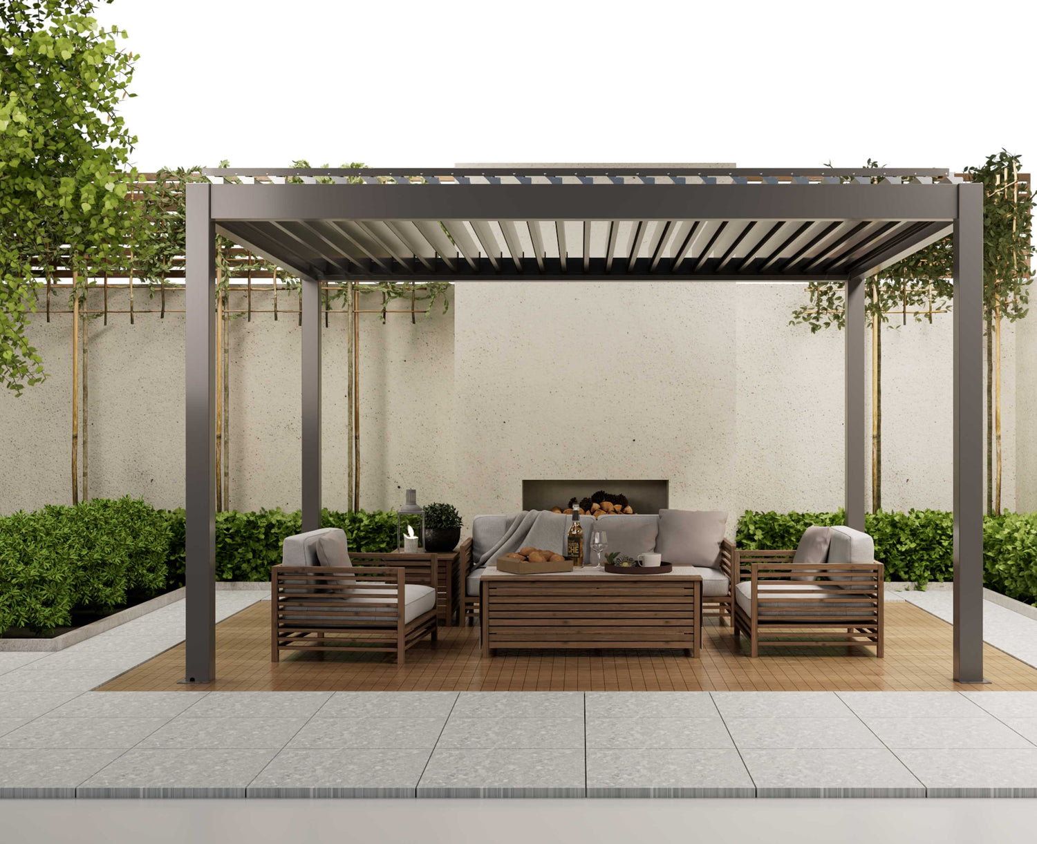 Upgrade your pergola with smart accessories for year-round comfort. Add motorized outdoor screens for privacy and wind protection, heaters for cozy warmth on cooler days, and integrated LED lighting for stylish ambiance after sunset.