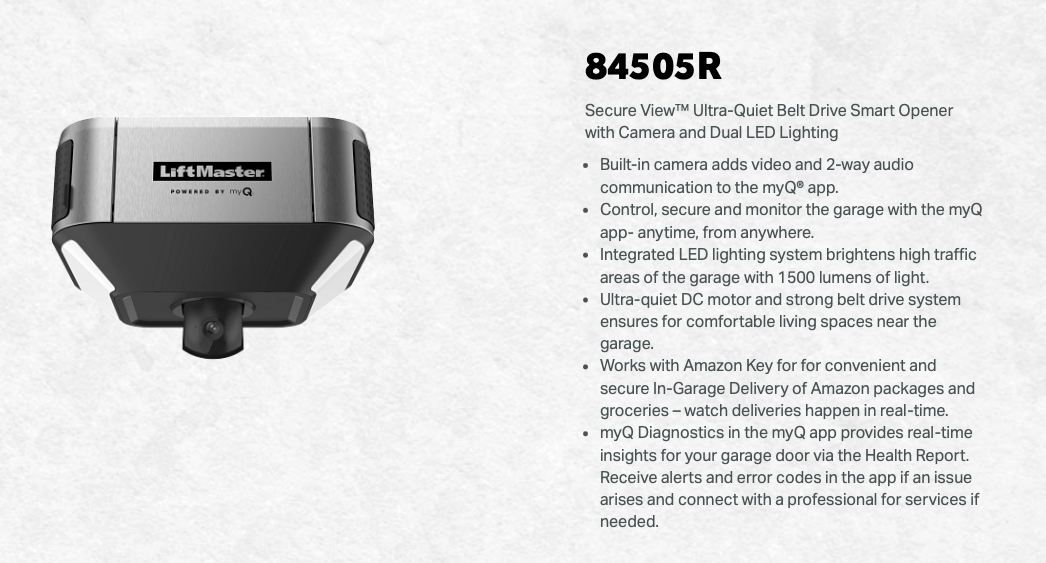 - Works with Amazon Key for for convenient and secure In-Garage Delivery of Amazon packages and groceries – watch deliveries happen in real-time.