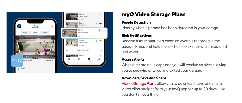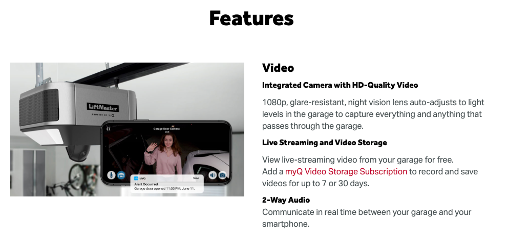 - Built-in camera adds video and 2-way audio communication to the myQ® app.