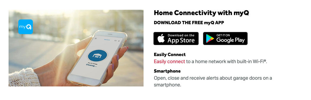 - Control, secure and monitor the garage with the myQ app- anytime, from anywhere.
