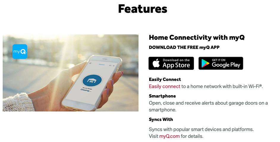 - Control, secure and monitor the garage with the myQ® app anytime, from anywhere.